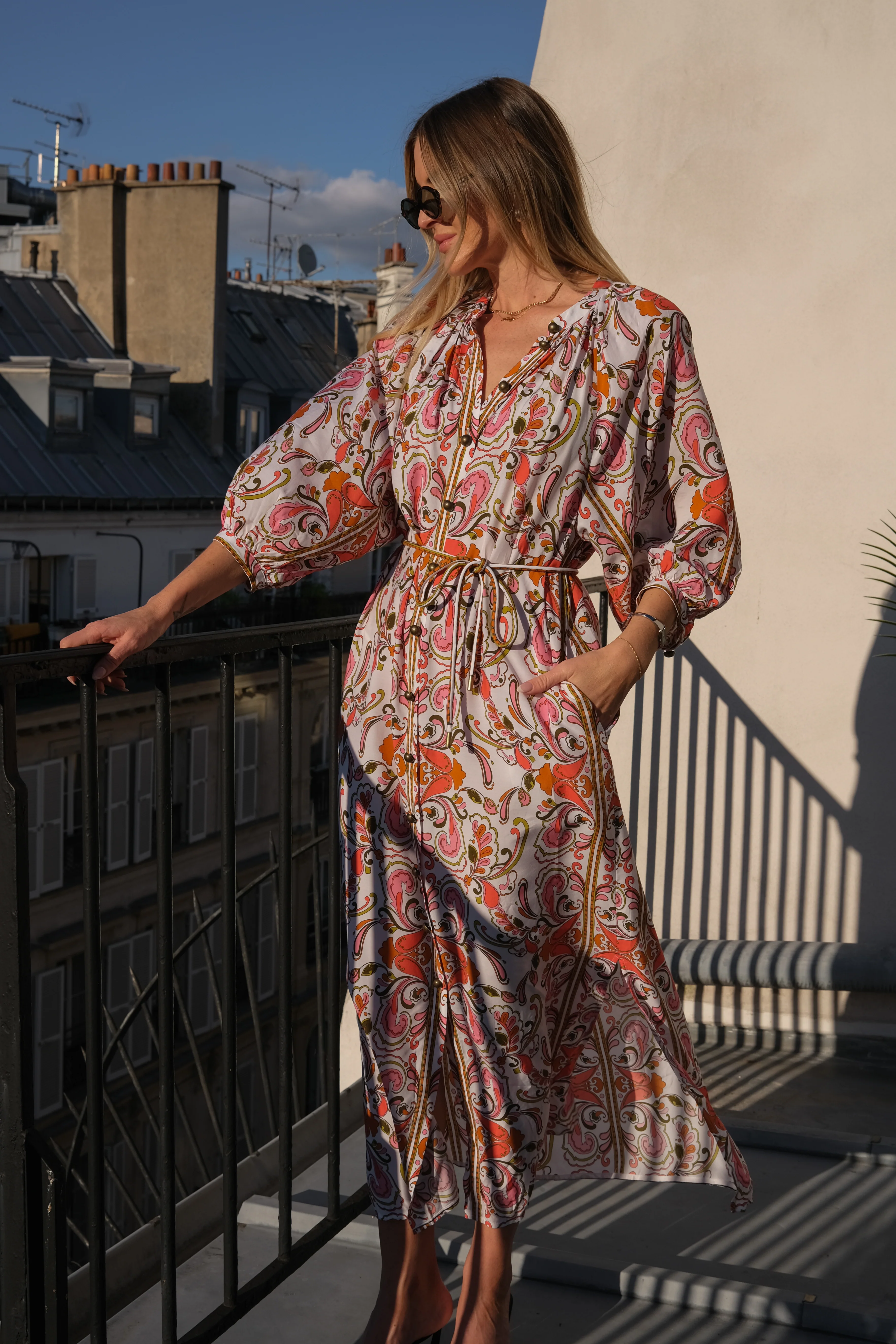 the bravura maxi is shaped by feminine details and fluid lines, delivering striking elegance in a bespoke print.